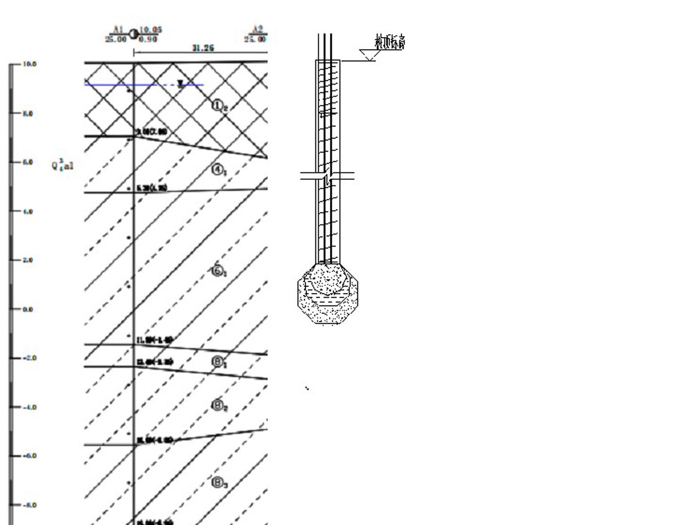基礎(chǔ)采用載體樁基礎(chǔ),設(shè)計樁徑為430mm,樁長9米/14米(包括載體2米),樁混凝土強度等級C35,抗?jié)B等級S8,樁身混凝土摻抗硫酸鹽外加劑;鋼筋選用HPB300、HRB400。單樁承載力特征值800KN/1400KN樁端載體持力層為第6層粘土。13個單體共計布樁2837根。